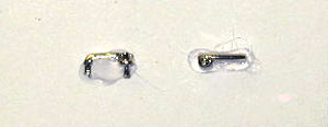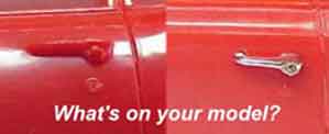 Direct replacement door handles for all those thick, molded closed exterior door handles that are next to impossible to apply foil to. Cast metal, nickle plated. Shown approx. 2.5 times actual size.